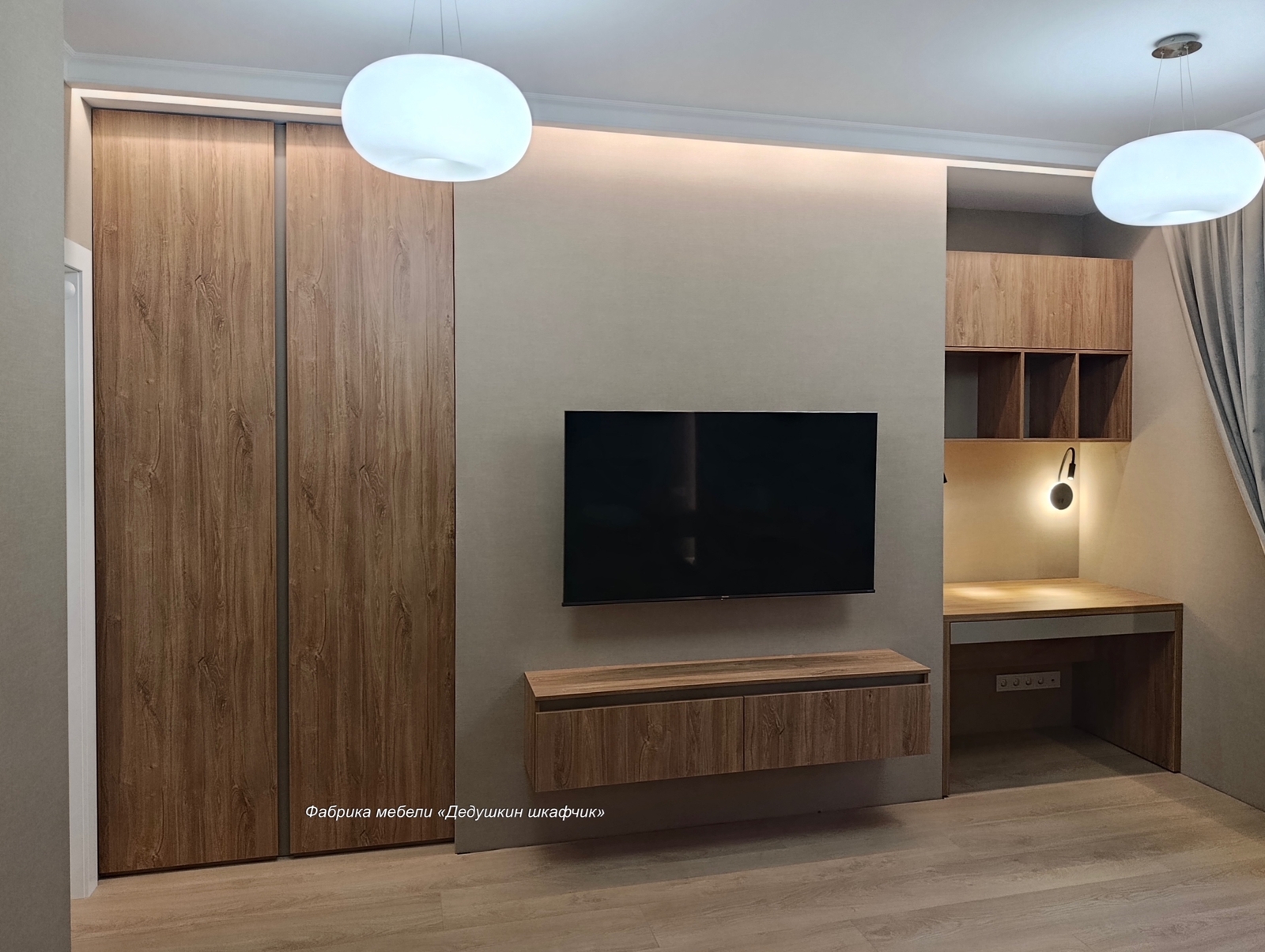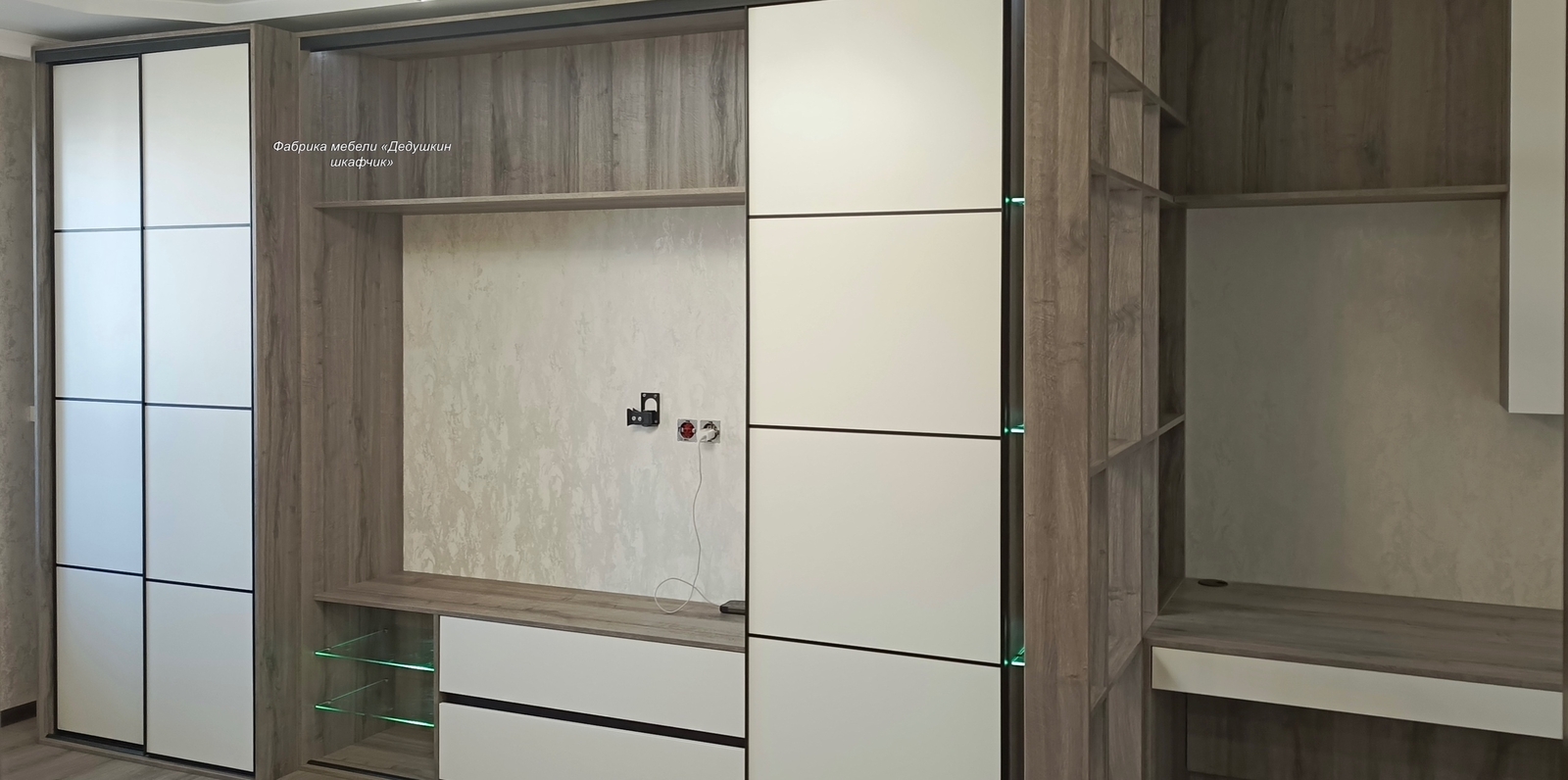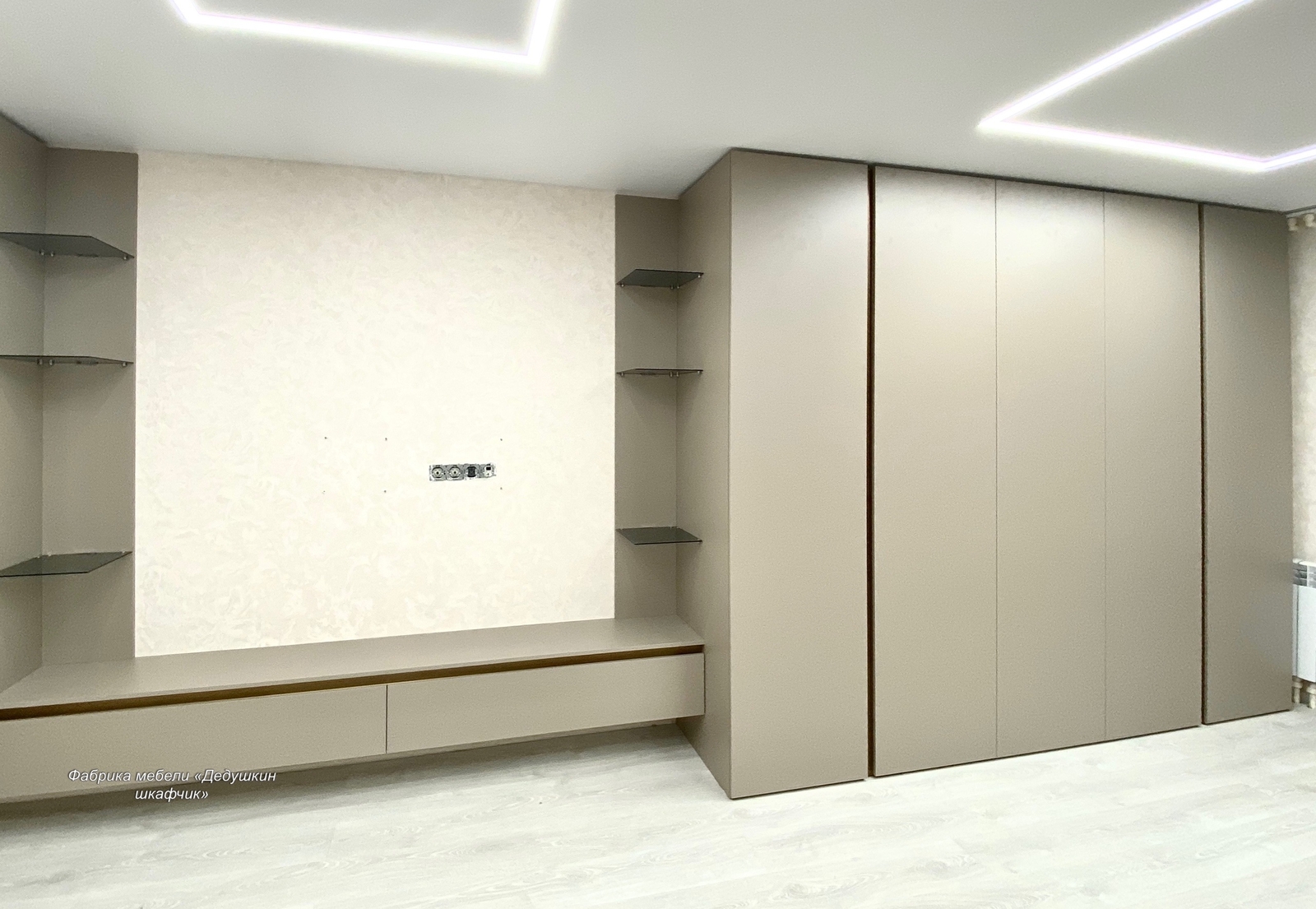 Встроенный трехстворчатый шкаф для гостиной по индивидуальному проекту.